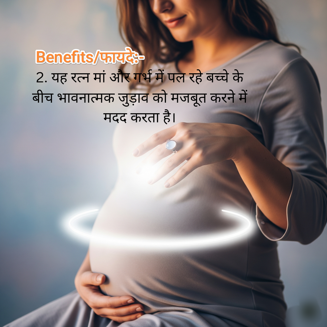 मूनस्टोन (चंद्रकांत मणि) एक बेहद पवित्र और शक्तिशाली रत्न है। इसे चंद्रमा का पत्थर कहा जाता है। यह मन की शांति, प्रेम, नई शुरुआत और भावनात्मक संतुलन का प्रतीक है। खासतौर पर महिलाओं के लिए यह बेहद शुभ माना जाता है क्योंकि यह गर्भावस्था और हार्मोनल संतुलन में सहायक होता है।